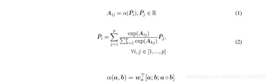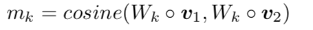 作者通过cosine函数计算两个向量之间的相似度。注意稍有不同在于上式通过一个可学习参数来统计不同维度的相似度。