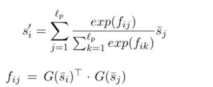 然后, 通过self-attention layer获取词序和上下文信息. self-attention过程如下: