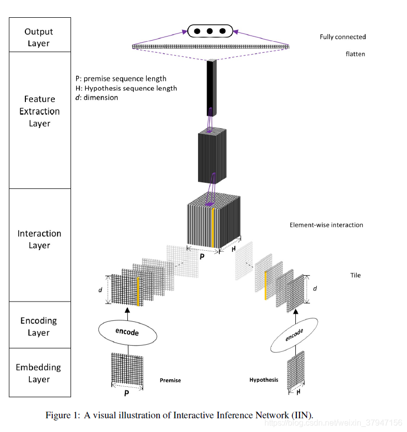 3、Interaction Layer: 生成premise和hypothesis之间的interaction tensor.