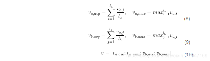的局部推理信息,对于BiLSTM提取到的信息,作者认为求和对序列长度比较敏感,不太健壮,因此他们采用了:最大池化和平均池化的方案,并将池化后的结果连接为固定长度的向量。如下: