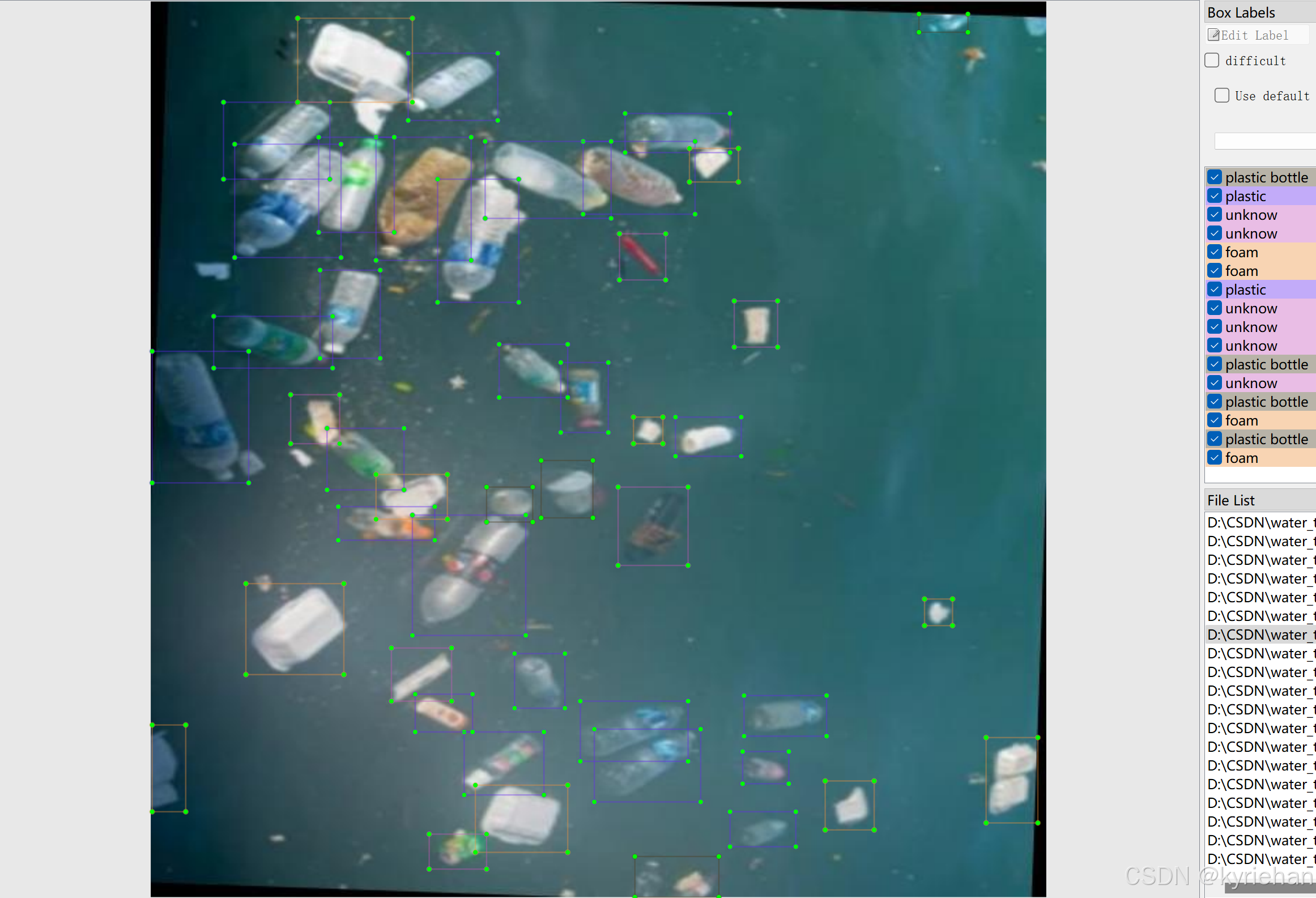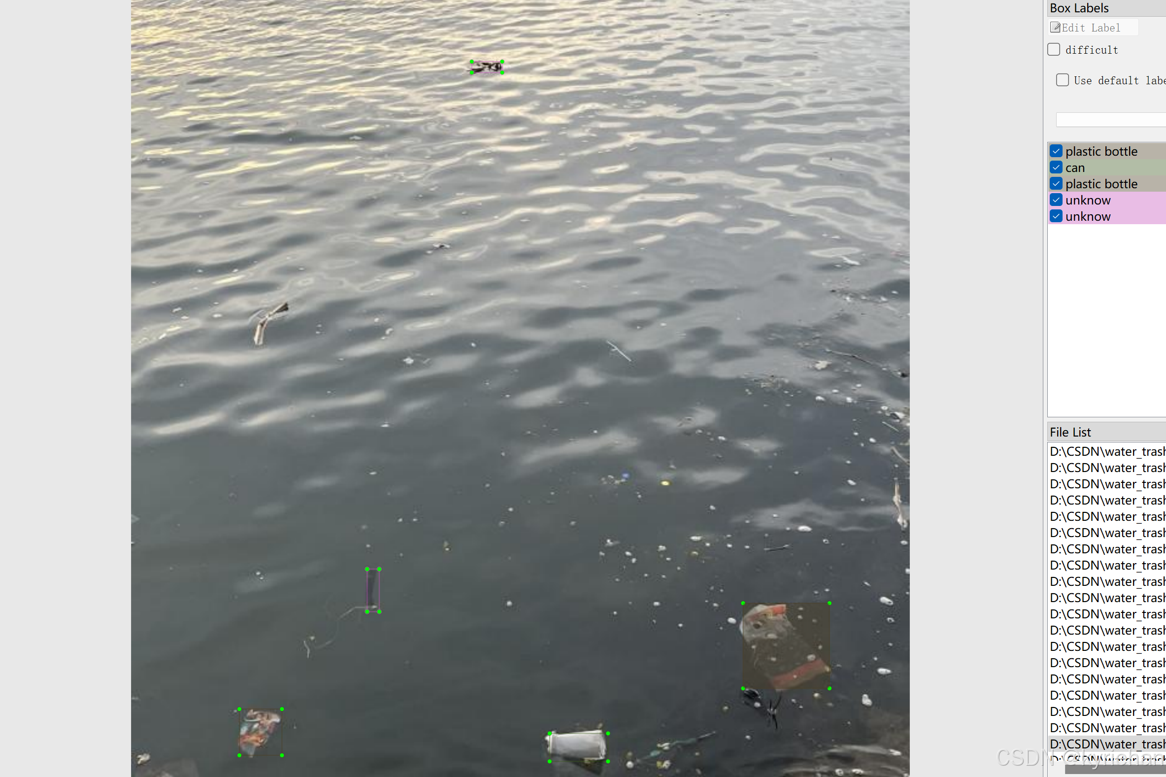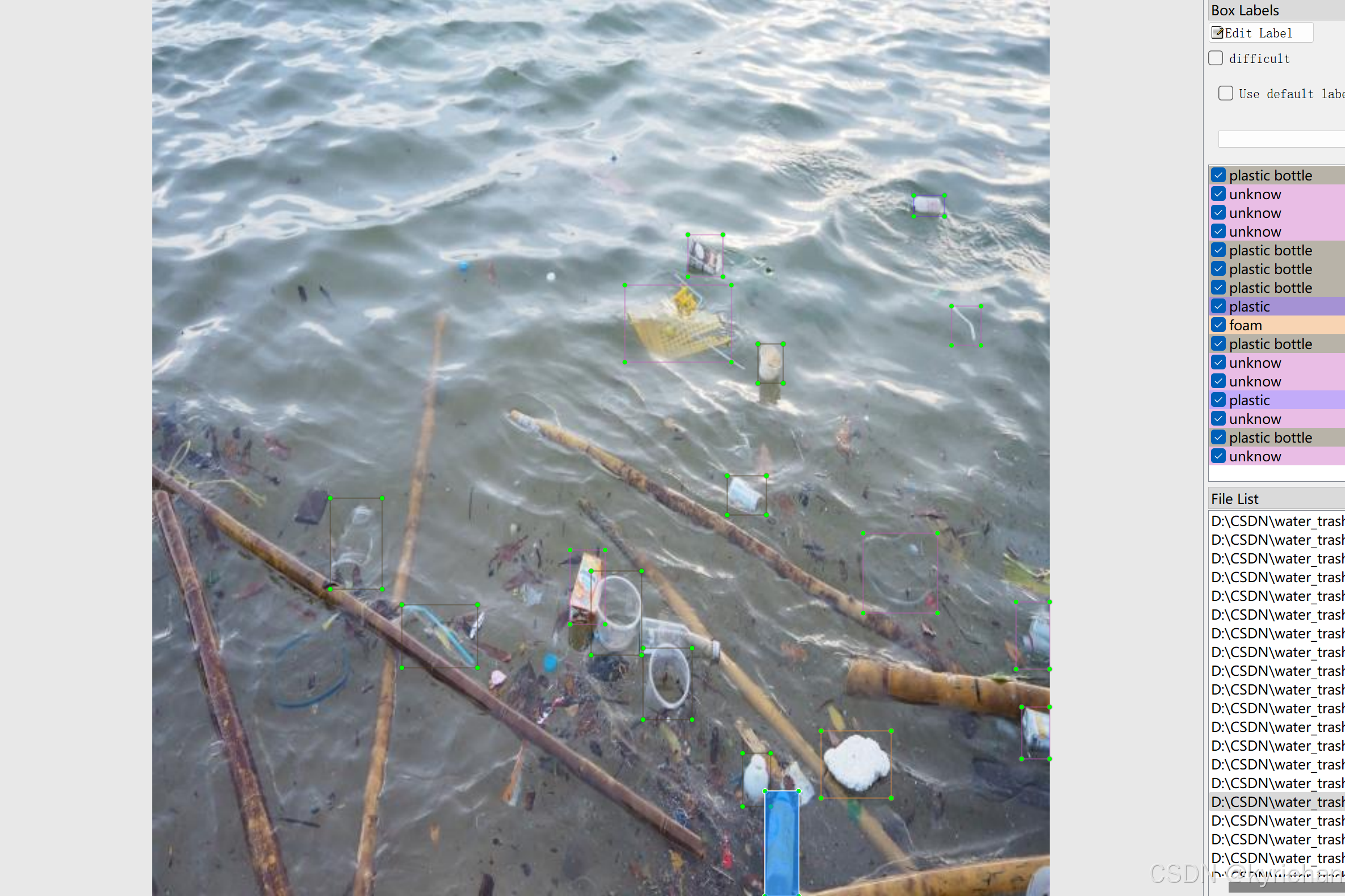 - 标注内容:classes = ['can', 'foam', 'plastic', 'plastic bottle', 'unknow'],总计5个分类。