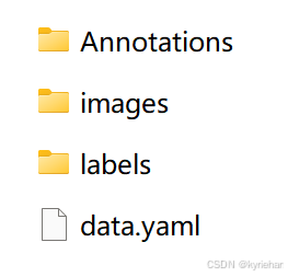 在ultralytics-main项目根目录下,创建data文件夹,并在data文件夹下创建子文件夹:Annotations、images、imageSets、labels,其中,将pascal VOC格式的XML文件手动导入到Annotations文件夹中,将JPG格式的图像数据导入到images文件夹中,imageSets和labels两个文件夹不导入数据。