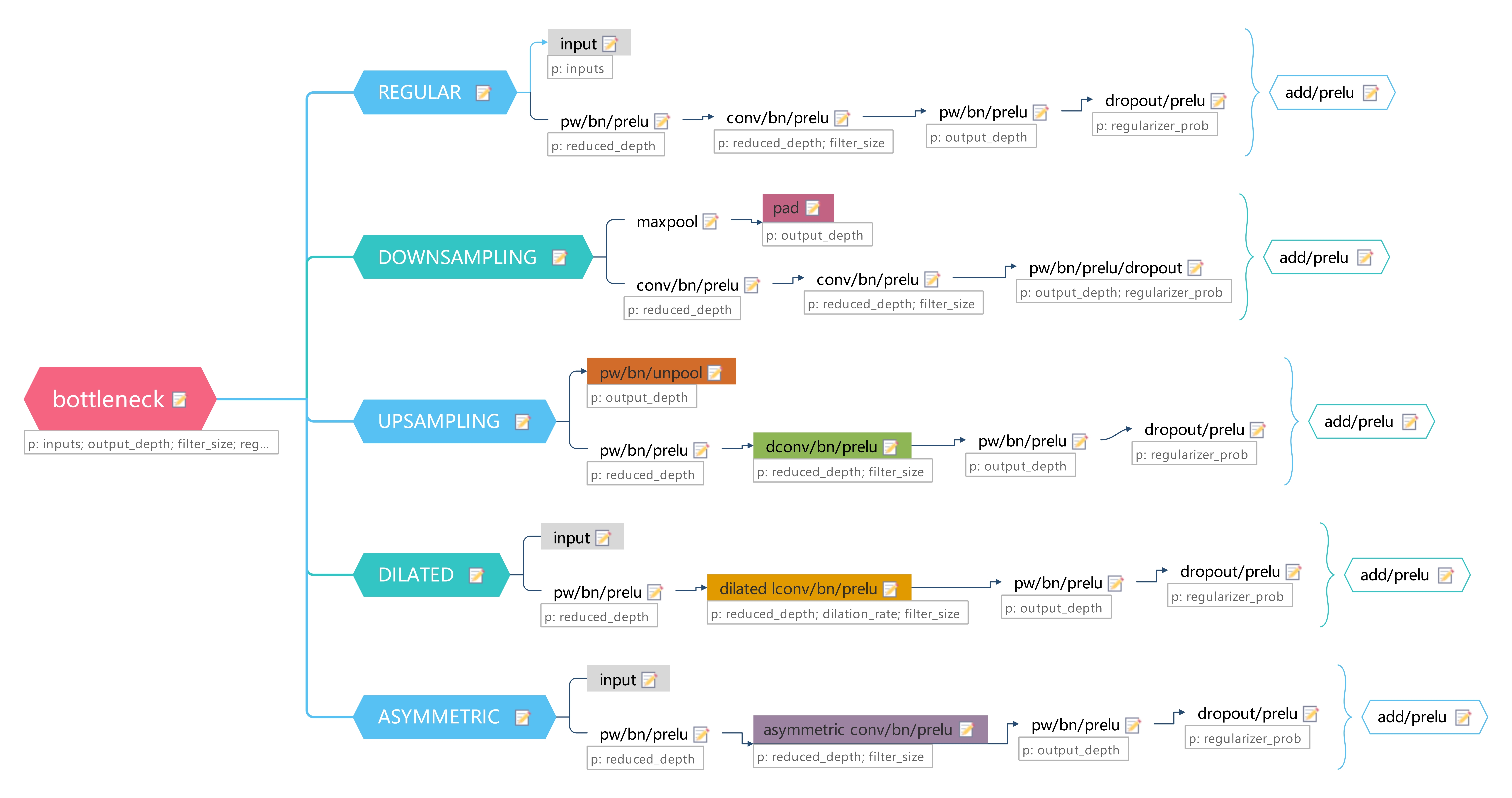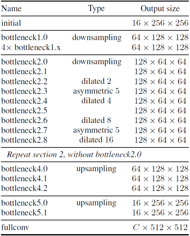 LaneNet是基于ENet 的encoder-decoder模型,如图5所示,ENet由5个stage组成,其中stage2和stage3基本相同,stage1,2,3属于encoder,stage4,5属于decoder。