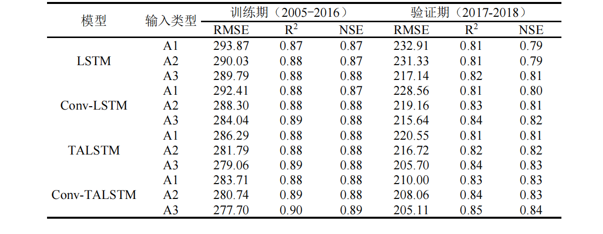 径流模拟研究:以韩江流域为研究对象,构建Conv-TALSTM模型,分析模型组件、参数和输入对径流模拟的影响,并与WetSpa模型和ANN模型进行比较。