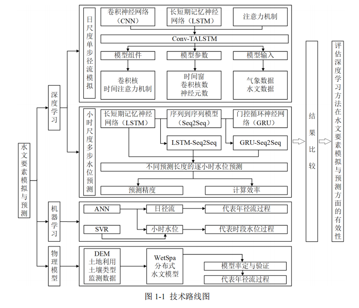本文主要研究深度学习在水文要素模拟与预测方面的应用效果,通过构建Conv-TALSTM模型和Seq2Seq模型,分别对径流和水位进行模拟与预测,并与传统物理模型和机器学习模型进行对比分析。