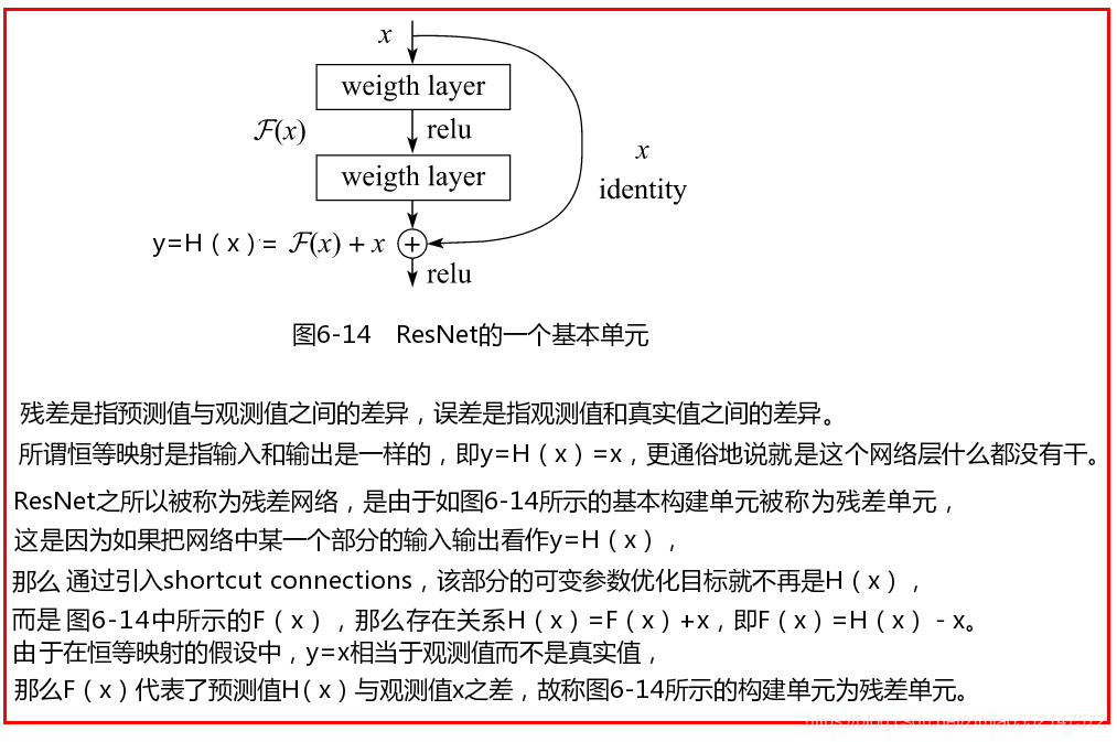 残差单元恰恰就是这样的一种方法,通过引入shortcut connections(快捷连接)即直接加入了输入数据x(identity)来实现恒等映射。