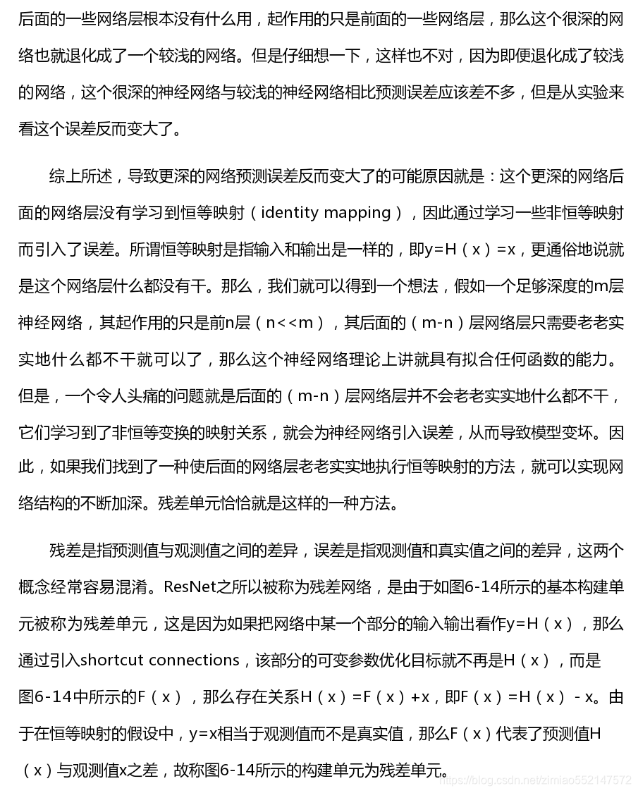 就会为神经网络引入误差,从而导致模型变坏。因此,如果我们找到了一种使后面的网络层老老实实地执行恒等映射的方法,
