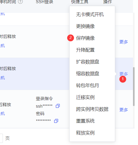 找到一开始使用的实例,点击保存镜像,此时系统盘的数据就被保存了