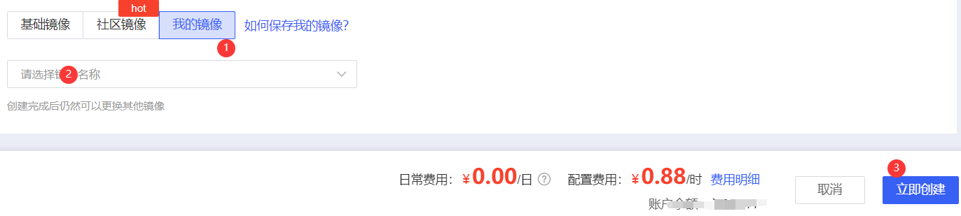 租用新实例,并选用刚才保存的镜像(新实例和旧实例在同一个地区才快,比如原来实例北京A区,那么新实例也租北京A区)
