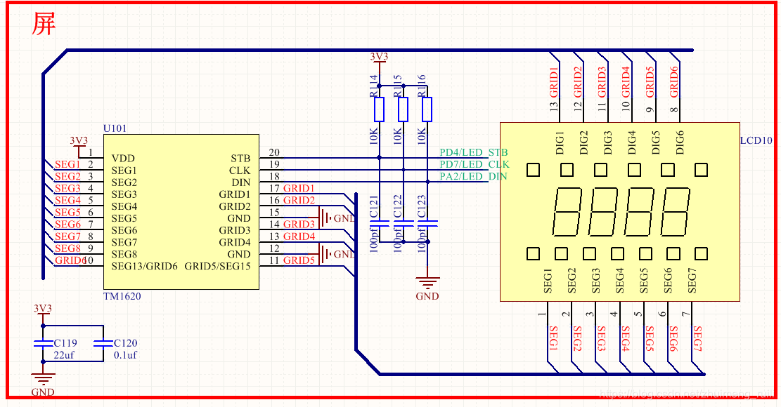 最近做一个项目需要驱动led屏幕,选取了tm1620来作为驱动芯片,原厂提供的代码有些问题,不能直接用,自己做了一些修改,使芯片可以正常的驱动原理图如下最终调试完成的协议为具体的代码为.h文件为/********************************************************************************...