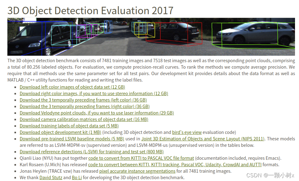 官网链接:The KITTI Vision Benchmark Suite