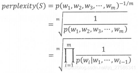 语言模型效果好坏的常用评价指标是perplexity,简单说,perplexity值刻画的是语言模型预测一个语言样本的能力。在一个测试集上得到的perplexity值越低,说明建模效果越好。计算公式如下: