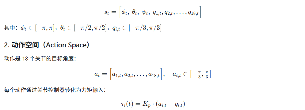- 18个关节角度:每条腿有 3 个关节,共 6 条腿。
