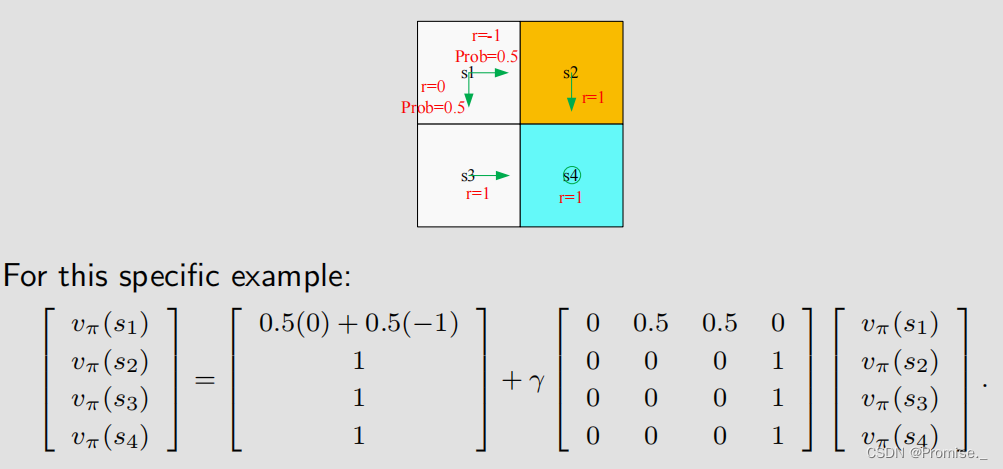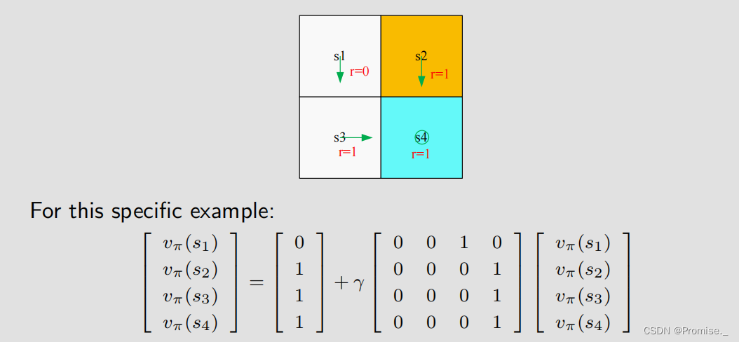 也许从上面这个式子来看,贝尔曼公式十分复杂,但其实十分简单,给出向量形式: