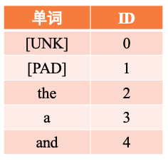 LSTM 模型不能直接处理文本数据,需要先将文本中单词转为向量表示,称为词向量(Word Embedding).为了提高转换效率,通常会事先把文本的每个单词转换为数字 ID,再使用第节中介绍的方法进行向量转换.因此,需要准备一个词典(Vocabulary),将文本中的每个单词转换为它在词典中的序号 ID.同时还要设置一个特殊的词 [UNK],表示未知词.在处理文本时,如果碰到不在词表的词,一律按 [UNK] 处理.
