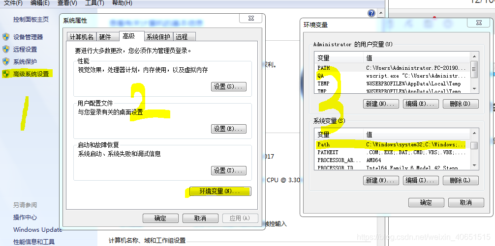 1.5:至此,python安装成功,如果之前没有配置环境变量,可以按照下面的顺序依次点击1,2最后双击3在最后写一个分号“;”然后添加安装的路径就行了。