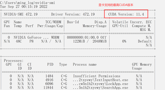 打开控制台输入nvidia-smi,并查看可用的CUDA最高版本。