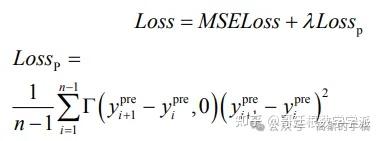 Miner理论认为,材料在交变载荷作用下,都有一定的寿命,应力每循环一次,就会对材料造成微量损伤,这种损伤是不可逆且逐渐积累的。然而,数据模型的性能受到训练数据集数量少和缺乏关于真实世界过程物理信息的限制,预测结果可能违背疲劳损伤不可逆这一物理知识。通过堆叠更多的层和使用更多的训练数据来扩展当前的深度学习技术只能从表面上缓解其中的一些问题。这些所代表的范围非常有限,无法解决深度学习模型更根本的问题,即缺乏与真实物理模型的联系。为了解决这个问题,提出了一种物理引导损失函数作为指导,以实现预测结果与物理知识的一致性。如下所示: