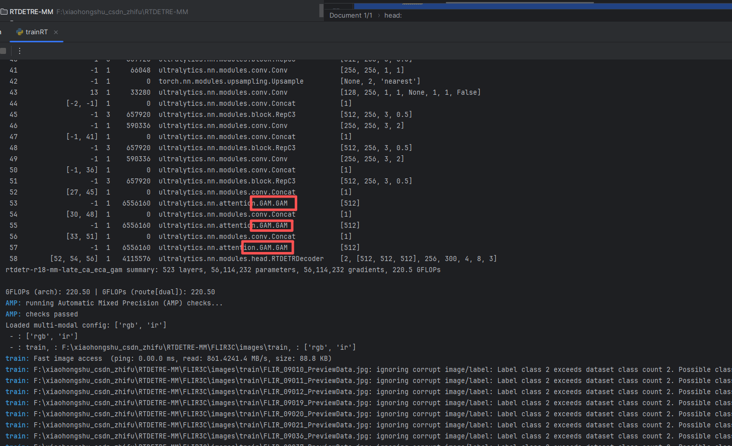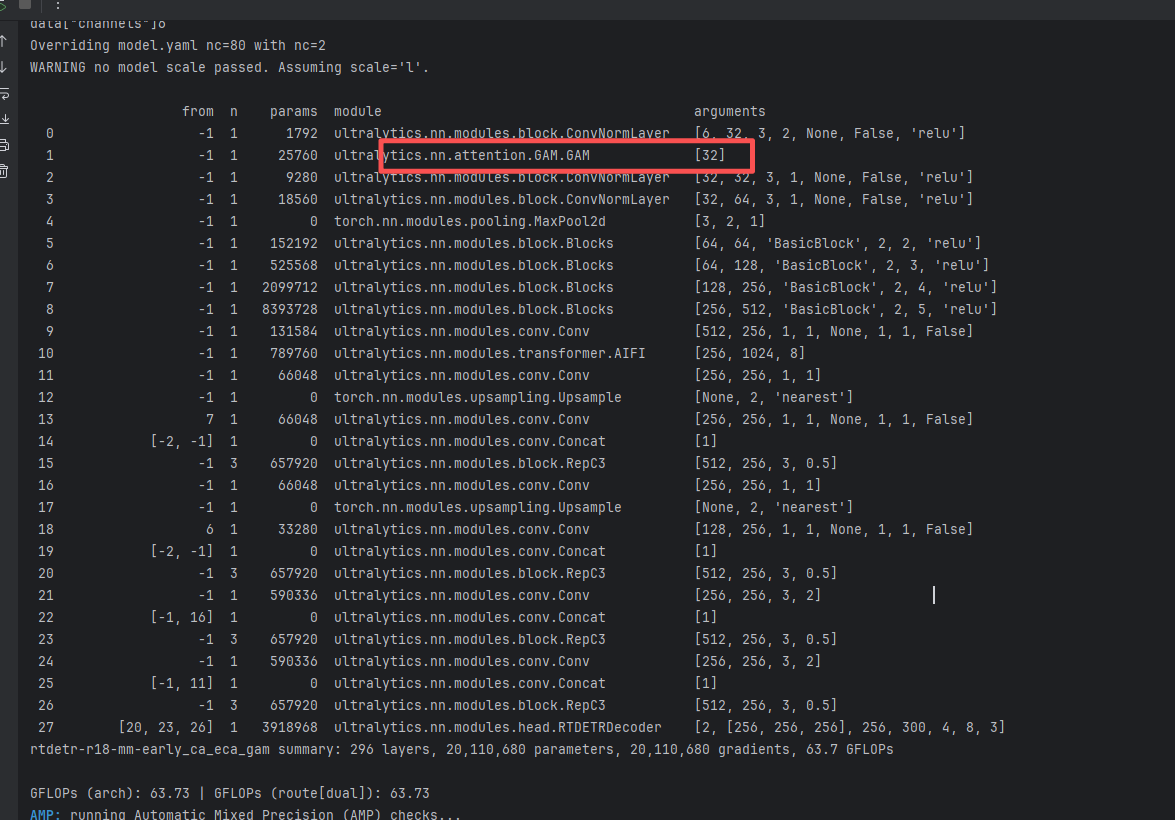 GAM训练信息:rtdetr-r18-mm-late_ca_eca_gam summary: 523 layers, 56,114,232 parameters, 56,114,232 gradients, 220.5 GFLOPs