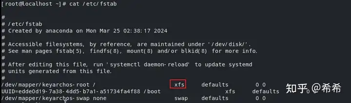 1)查看此逻辑卷的文件格式,可以看出为xfs格式