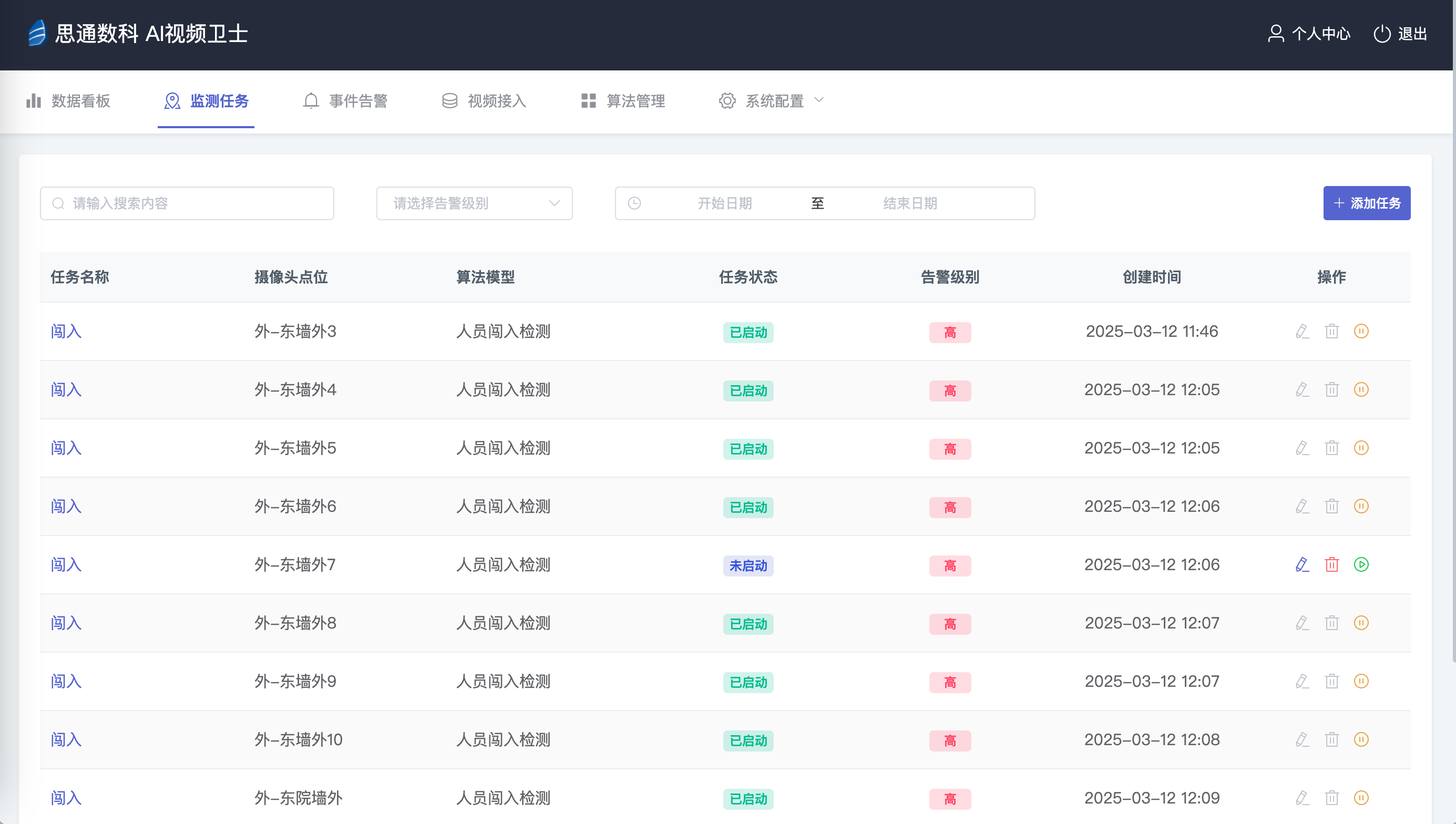 - 分布式部署:支持接入矿区全域摄像头(不限品牌、型号),通过 AI 平台统一管理,自动规划监控网格,对出入口、禁采区、运输路线实现 “多镜头接力追踪”;