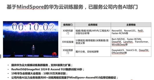 目前,基于MindSpore的华为云训练服务,已部署在华为内部各AI部门,而搭载HMS4.0/5.0的智能手机,使用了基于MindSpore的ML Kit,此外,MindSpore支撑华为数据通信网络平台实现智能控流,解决了拥塞精准控制难题。