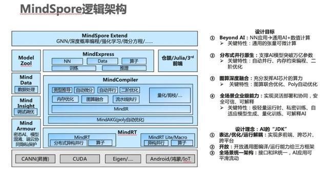MindSpore集成和借鉴了业界主流框架的优势,不过相比同类产品,MindSpore有三大特点:一是开发态友好,AI算法即代码;运行高效,与昇腾芯片对接;部署灵活,全场景按需协同。