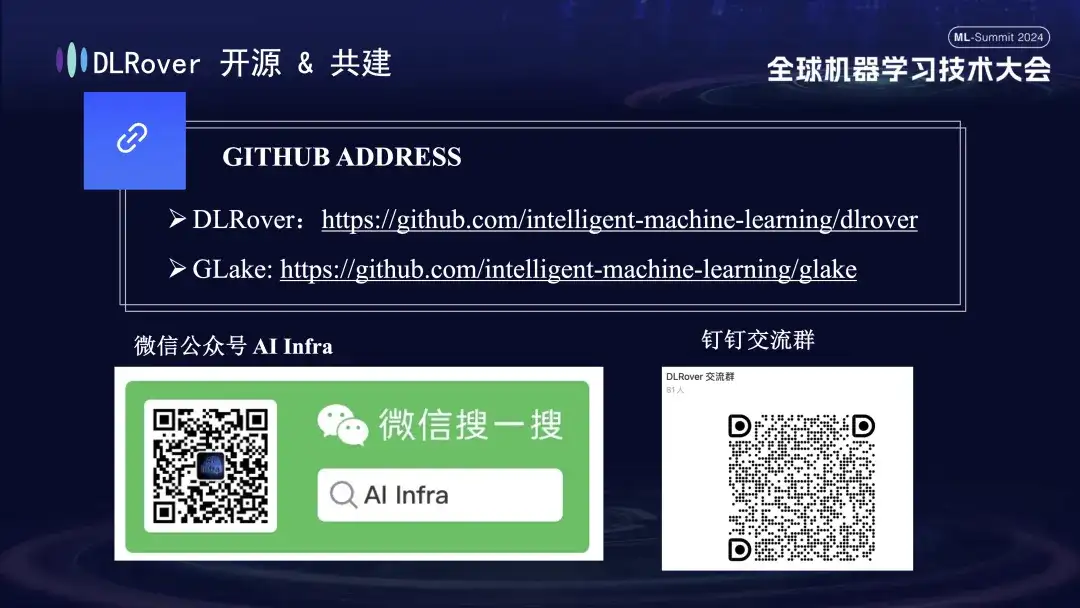我们的微信公众号“AI Infra”,也会定期发布有关 AI 基础设施的前沿技术文章,旨在分享最新的研究成果和技术洞察。同时,为了促进进一步的交流与讨论,我们还设立了钉钉群组,欢迎大家加入,在此提问、探讨相关技术问题。谢谢大家!