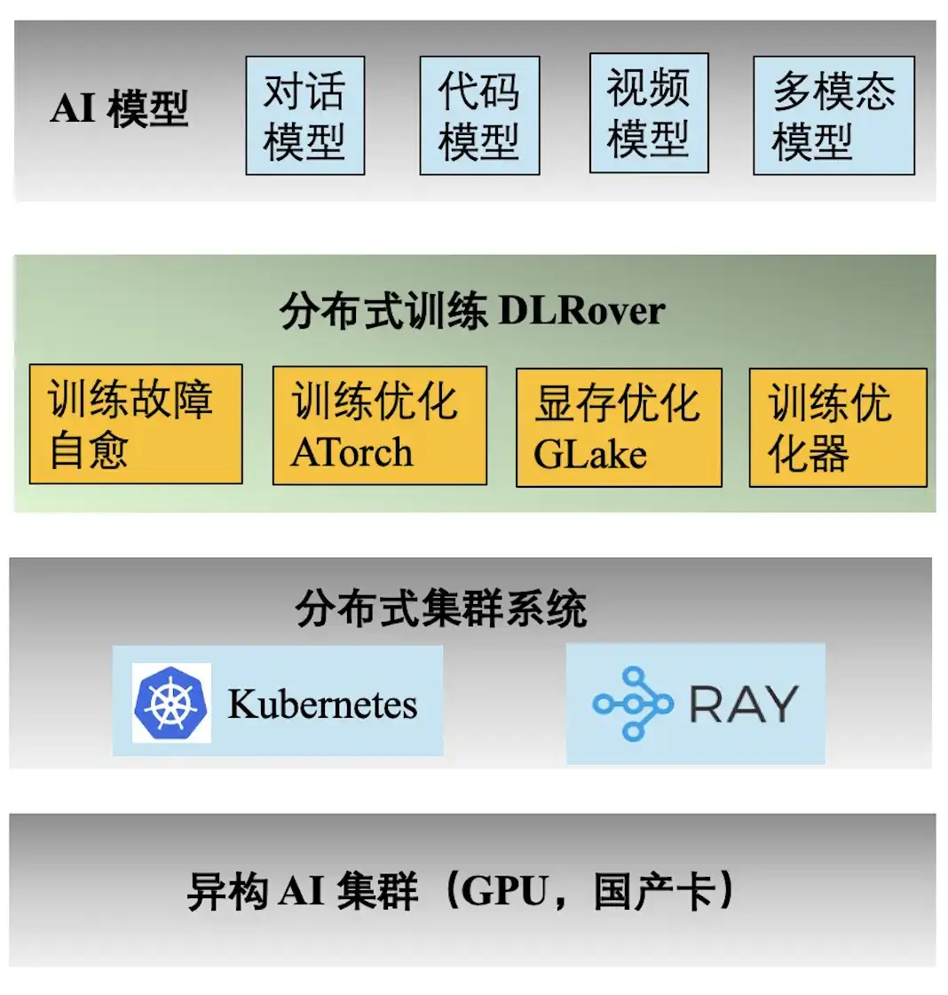 - 训练优化 ATorch:自动根据模型和硬件选择最优的分布式训练策略。将千卡(A100)集群硬件算力利用率 >60% ;