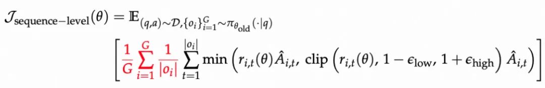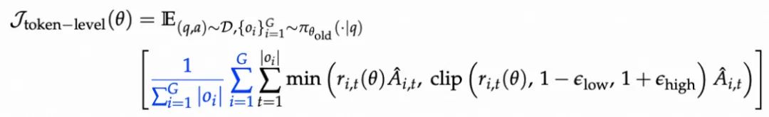 - 词元级损失:以 token 为基本单位,每个 token 都对总 loss 平均贡献,抑制短句偏置,补足长推理激励;