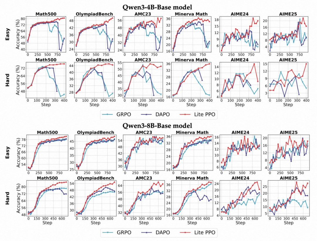 提出的 Lite PPO 方案表明,复杂的 “多技巧堆叠” 并非必要。在多数实际场景下,精简而有针对性的技术组合反而更具鲁棒性和可扩展性。