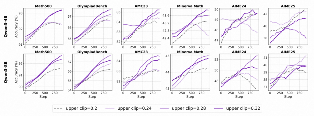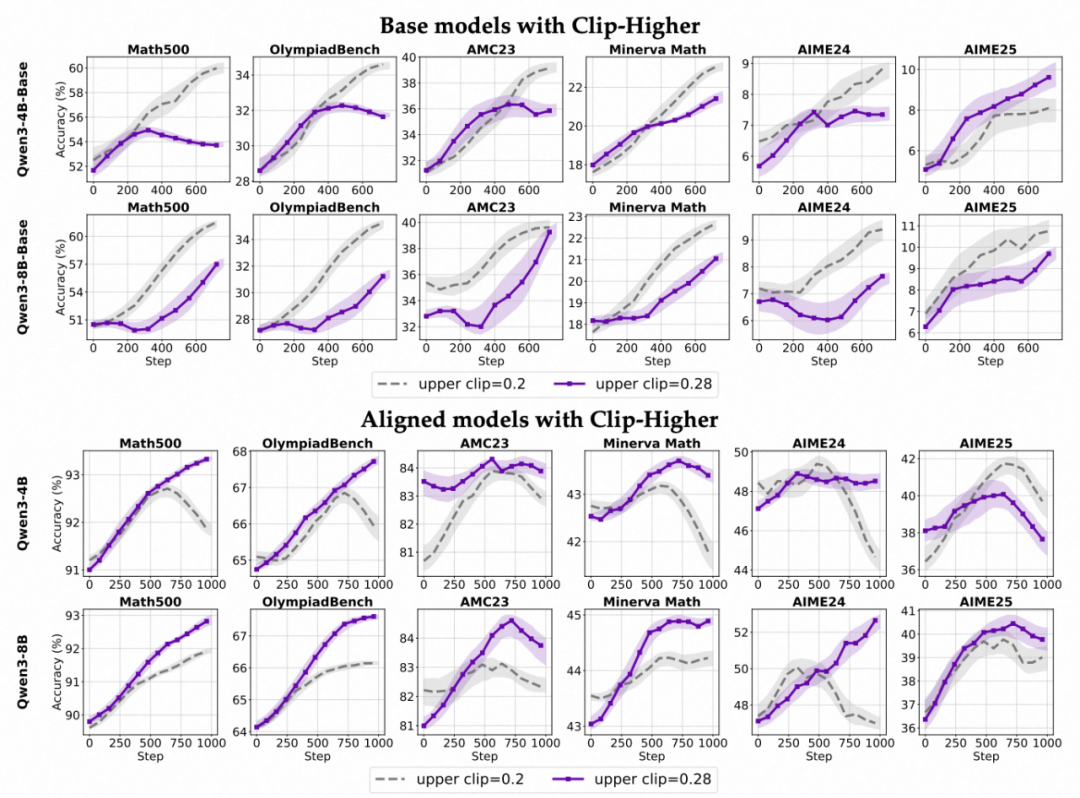 - 对于未对齐的 Base 模型,单纯扩大上剪裁范围作用十分有限,甚至可能扰乱优化过程、降低整体表现。
