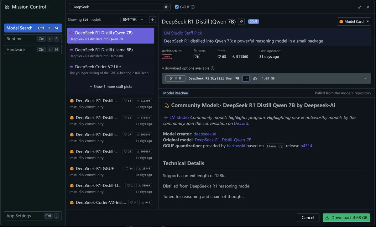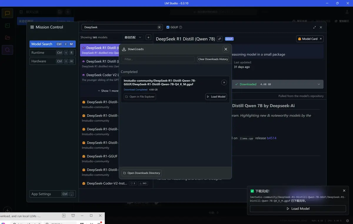 下载完成后,回到LM Studio对话框就可以使用啦。