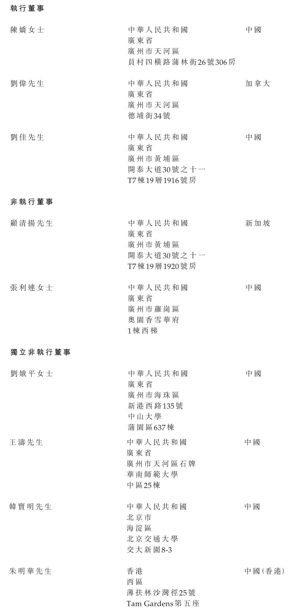 佳都科技执行董事陈娇女士、刘伟、刘佳;非执行董事分别为顾清扬、张利连女士;独立非执行董事分别为刘娥平女士、王涛、韩宝明、朱明华。