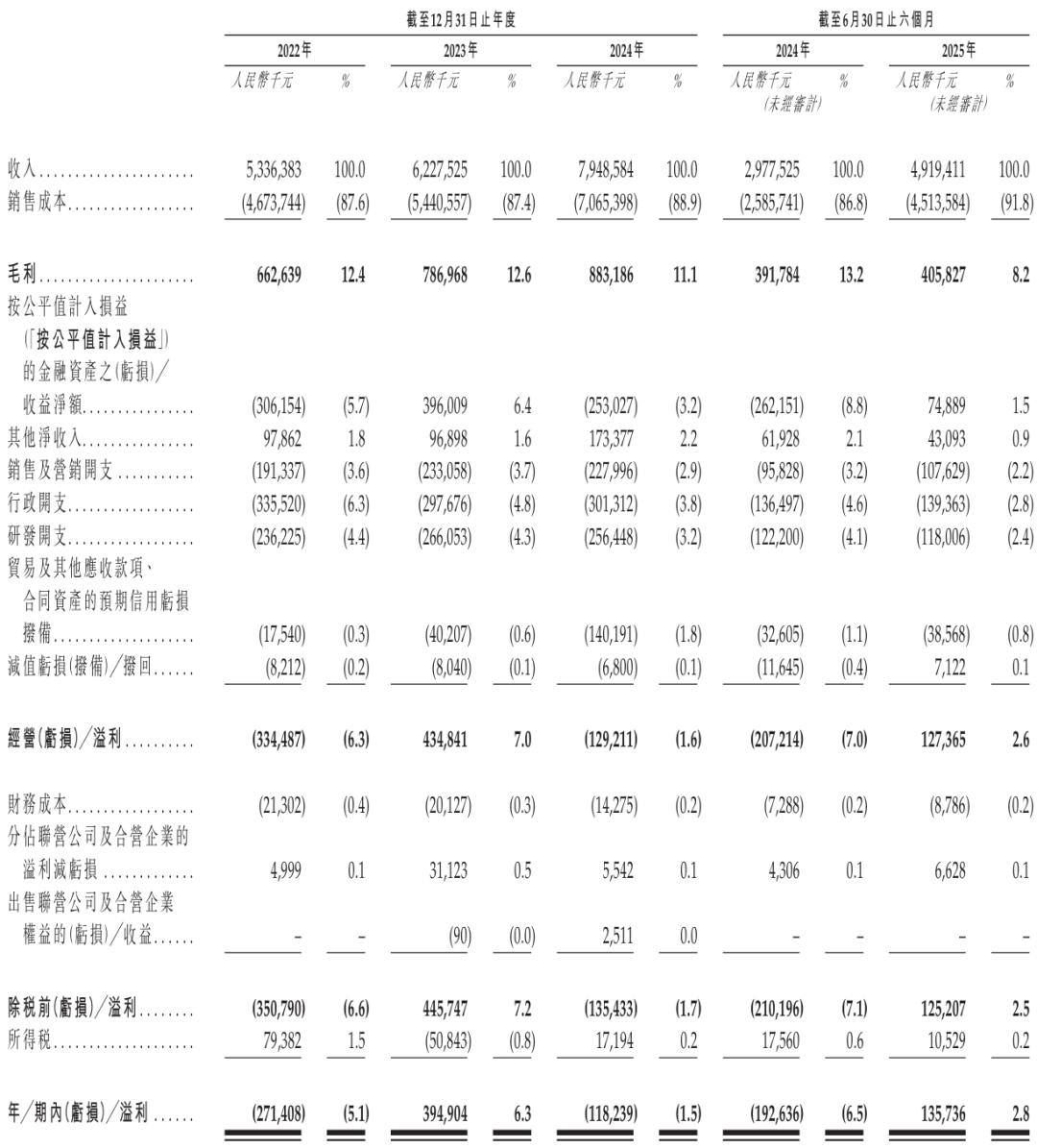 佳都科技2025年上半年营收为49.19亿元,上年同期的营收为29.78亿元;运营利润为1.27亿元,上年同期的运营亏损为2.07亿元;期内利润为1.36亿元,上年同期的期内亏损为1.93亿元;期内利润率为2.8%,上年同期的期内利润率为-6.5%。