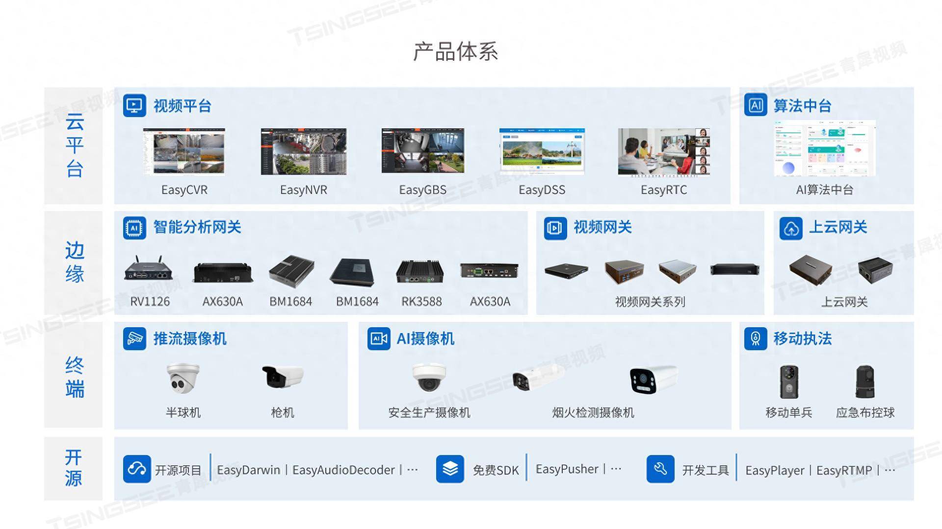 TSINGSEE青犀视频云边端架构还通过数据互联互通、开放共享的方式,将云端的服务能力下沉到边缘端与设备端。这种下沉不仅提高了服务的响应速度和可靠性,还使得AI能力能够更贴近用户的使用场景。同时,结合灵活调配的AI算力,视频云边端架构能够不断赋能边缘端,推动边缘计算的发展和应用。