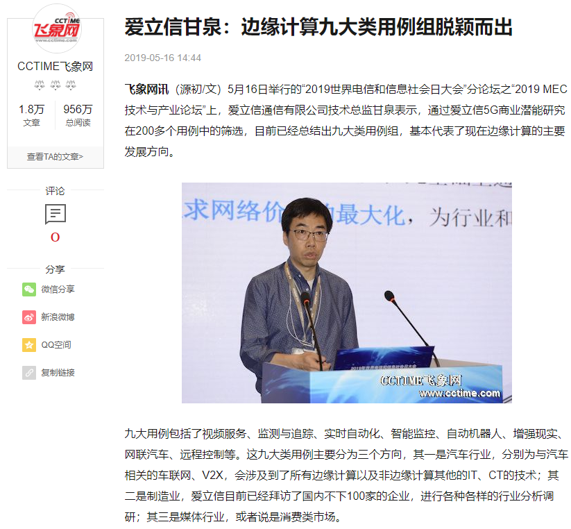 百度上关于甘泉老师的相关介绍页面超过了 500 条。甘泉老师是爱立信解决方案总监,现在主要工作是围绕 5G 的边缘计算,主要是从运营商的角度为 5G 网络在 2B 行业的落地推广进行探索和实践。