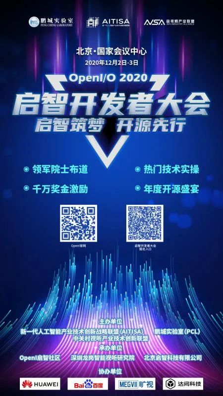 随着人工智能技术的进一步发展和落地,深度学习、大数据衍生、算力崛起等领域也在更多的应用场景中得到实现。面对如此向好的发展态势,越来越多的开发者选择拥抱开源,用智慧源创为 AI 发展助力,充分诠释开源开放是 AI 与社会发展深度融合的工具属性,贡献无限的中国开源力量。自创办以来,启智开发者大会一直致力于探寻促使中国开源走向成熟的方法,打造开源社区生态,优化中国开源开放的环境与氛围。今年启智开发者大会将于2020年12月2日-3日在北京·国家会议中心举办,本届启智开发者大会将褒奖启智社区现有突出贡献开源项目团队,并启动启智社区2020年度优秀开发者评选,扩大技术人才的多样性,推动全球开源创新。