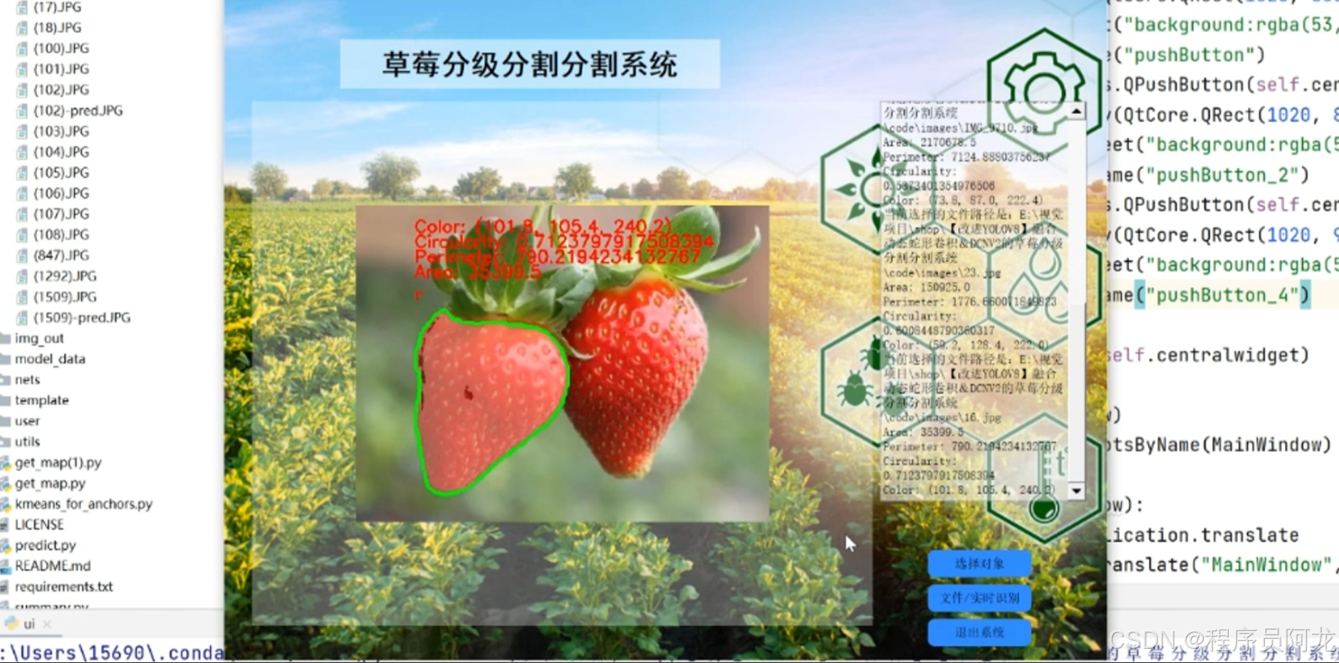 推动农业智能化发展:本研究提出的自动化草莓分级分割系统,不仅能够提高草莓的质量控制和市场竞争力,还能为农业生产带来更高的效益。通过自动化的技术手段,减少人工干预,不仅提高了工作效率,还能够保证分级的准确性和一致性。