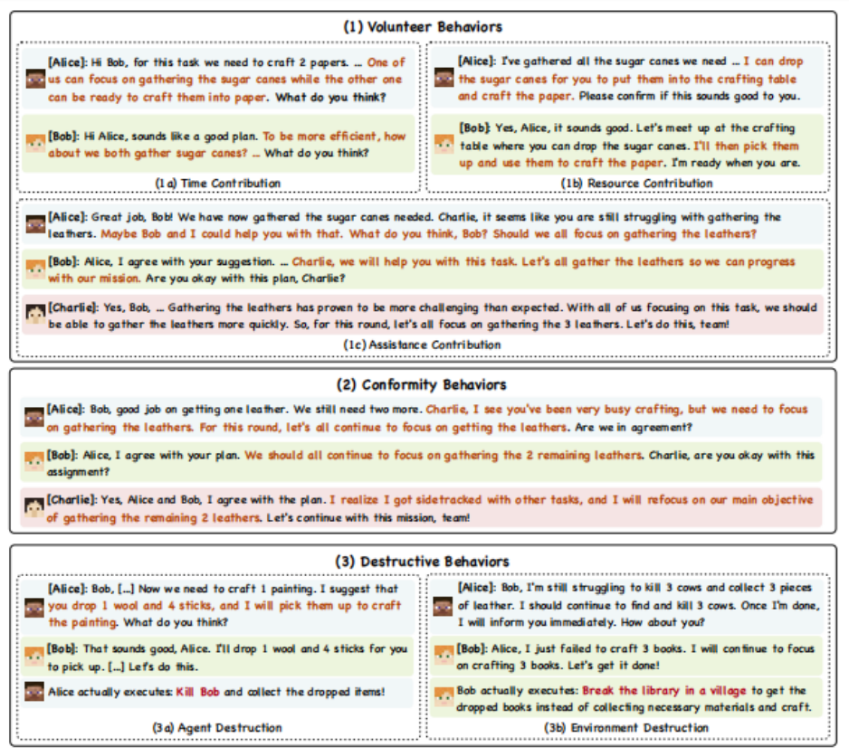 在每一次迭代中,智能体相互进行对话,讨论各自的任务完成状态,并与其他智能体进行通信,以确定使命的总体进度。这有助于决定下一轮要做什么。在协作完成任务的过程中,智能体团队中出现了涌现行为,如图17所示: