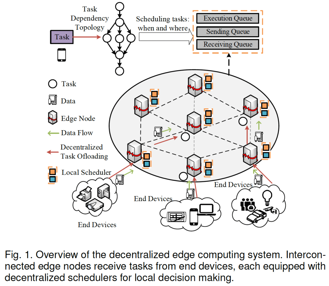 想象一下,在一个繁忙的边缘计算网络(比如智慧城市或自动驾驶的后台)中,一群AI“工人”(边缘节点)需要协同处理一堆复杂且相互依赖的任务。它们没有“总指挥”(去中心化),还得保证任务100%可靠,不能失败。