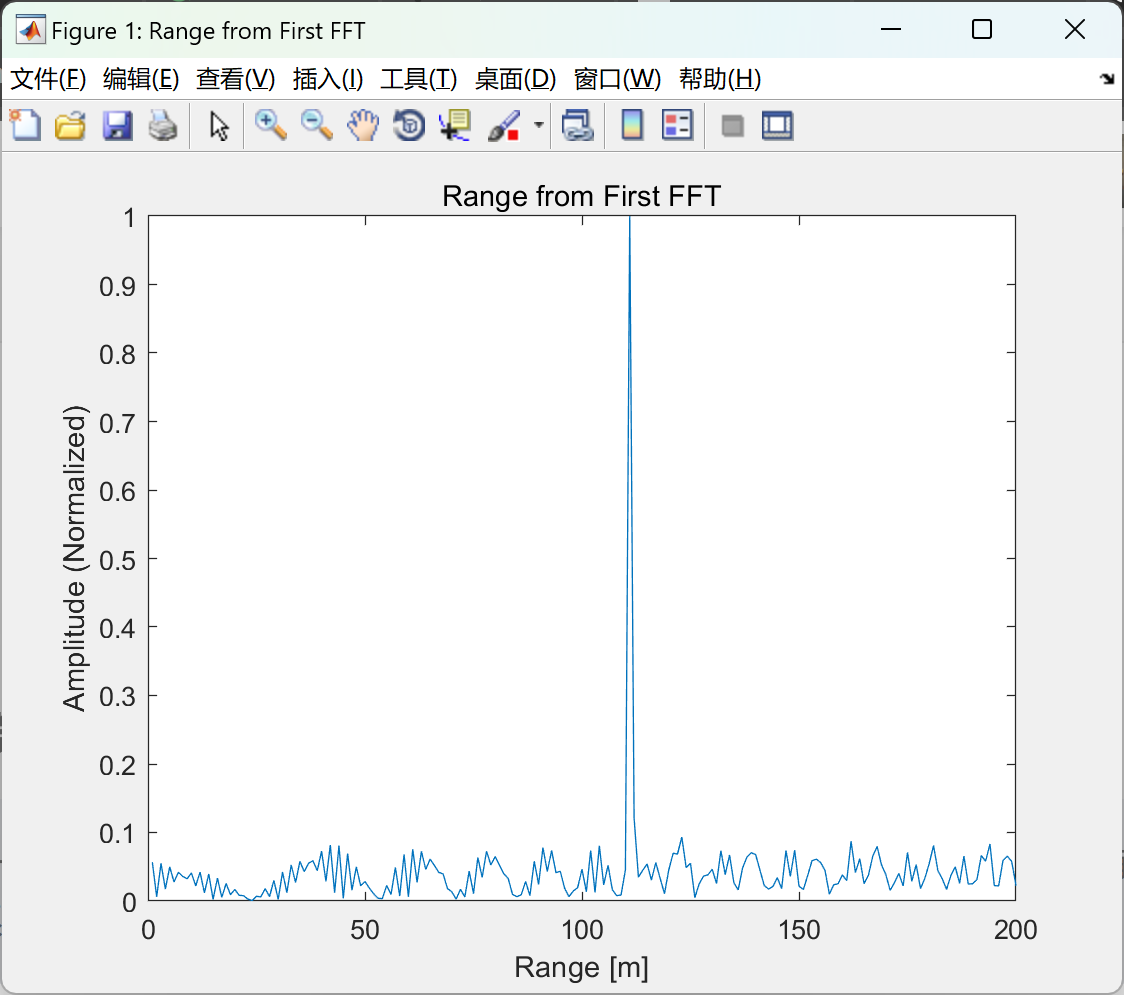 - 距离快速傅里叶变换(Range FFT):对接收信号进行距离快速傅里叶变换(Range FFT)以确定目标距离。快速傅里叶变换是一种将时域信号转换为频域信号的数学工具,在雷达信号处理中,通过Range FFT能够从接收信号的频域特征中提取出目标距离信息。这一过程利用了FMCW雷达信号的特性,即目标距离与接收信号的频域特征之间存在特定的数学关系。