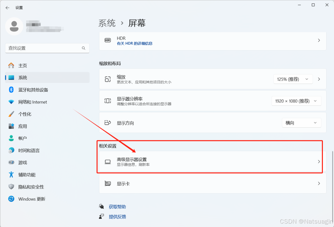 在“显示”设置中,向下滚动并点击“高级显示设置”。