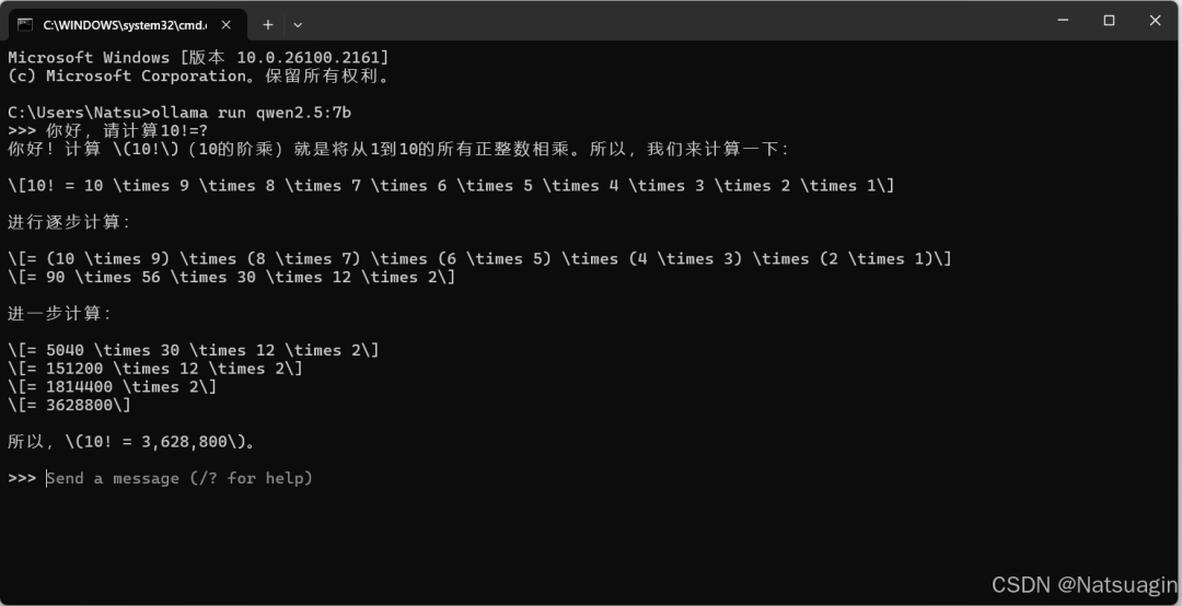 注意,Qwen2.5-7B 的回答可能并不是很理想。这并不是重点,因为后续我们可以下载更先进、更准确的模型,从而更深入地体验模型的训练和提升过程。