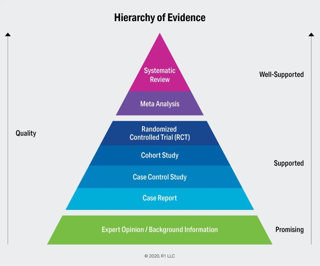 这些模型在构建过程中,虽然广泛使用了中医典籍和临床文献,但缺乏严格的循证医学评估,也大量使用低质量的证据(见下金字塔)。循证医学强调通过系统性评估和科学实验证据验证治疗效果,而许多中医药大模型所使用的数据尚未经过现代循证医学的严格审查。因此,模型给出的诊疗建议可能未经过充分的科学验证,缺少临床随机对照试验的支持,导致其在临床应用中可靠性和有效性难以得到保证。最终就是“幻觉”+“垃圾结论” = 错上加错。