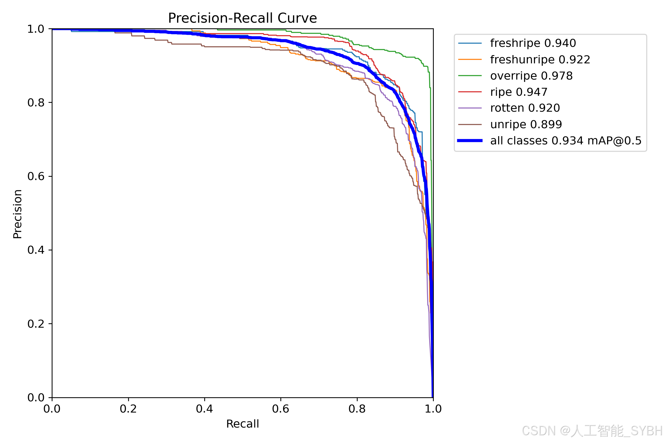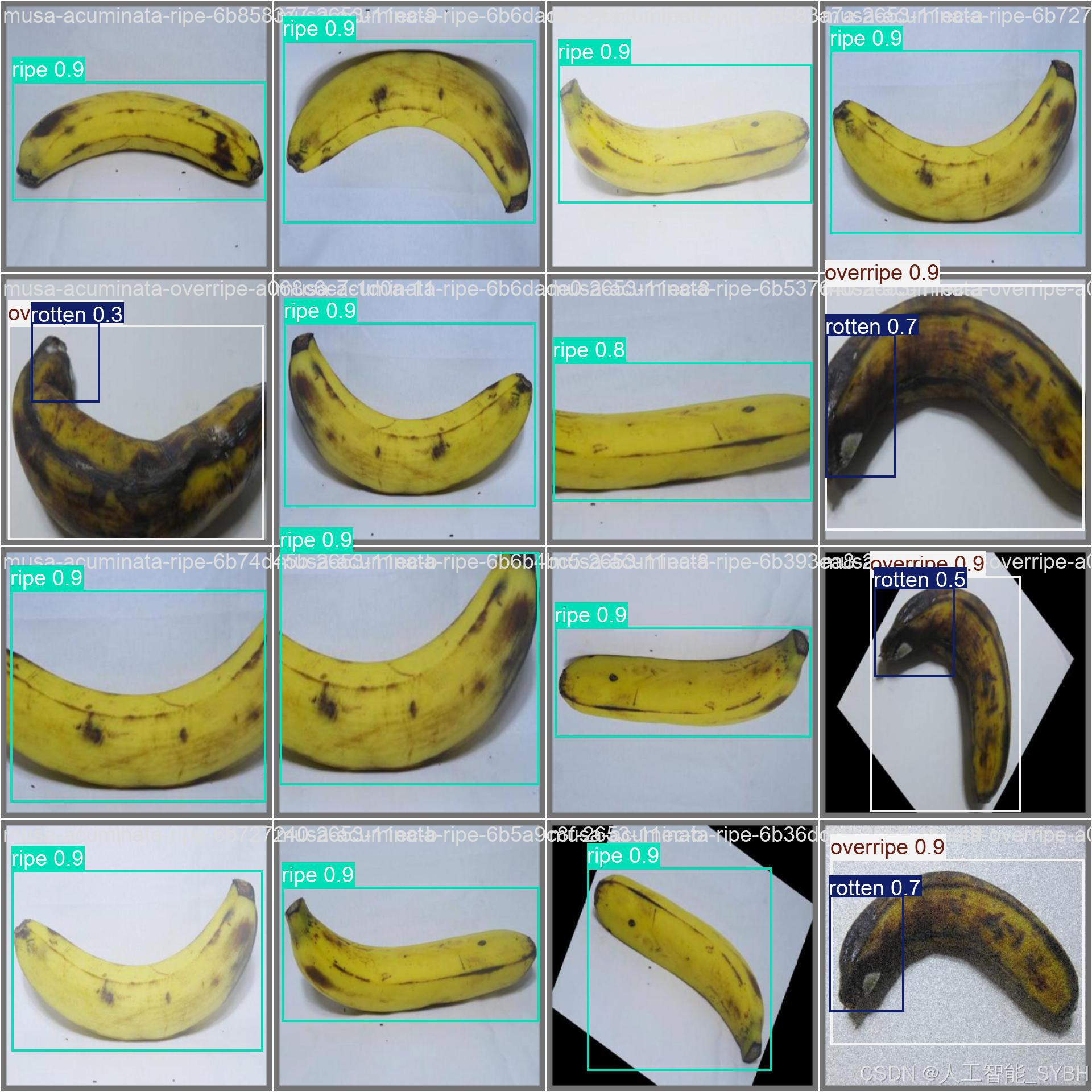 本项目基于YOLOv8目标检测算法开发了一套香蕉成熟度自动检测系统,能够准确识别和分类香蕉的6种成熟状态:新鲜成熟(freshripe)、新鲜未成熟(freshunripe)、过熟(overripe)、成熟(ripe)、腐烂(rotten)和未成熟(unripe)。系统使用大规模香蕉图像数据集进行训练,包含训练集15,792张图像、验证集1,525张图像和测试集757张图像,确保了模型对各种成熟度香蕉的识别鲁棒性。该系统可实现对香蕉成熟度的实时、非接触式检测,准确率超过90%,为香蕉采摘、分拣、储存和销售提供了智能化的解决方案。