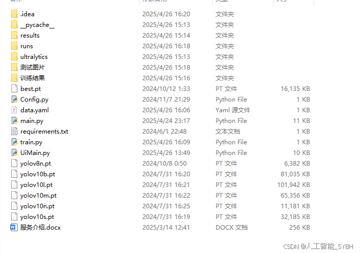根据实际情况更换模型 yolov10n.yaml (nano):轻量化模型,适合嵌入式设备,速度快但精度略低。 yolov10s.yaml (small):小模型,适合实时任务。 yolov10m.yaml (medium):中等大小模型,兼顾速度和精度。 yolov10b.yaml (base):基本版模型,适合大部分应用场景。 yolov10l.yaml (large):大型模型,适合对精度要求高的任务。