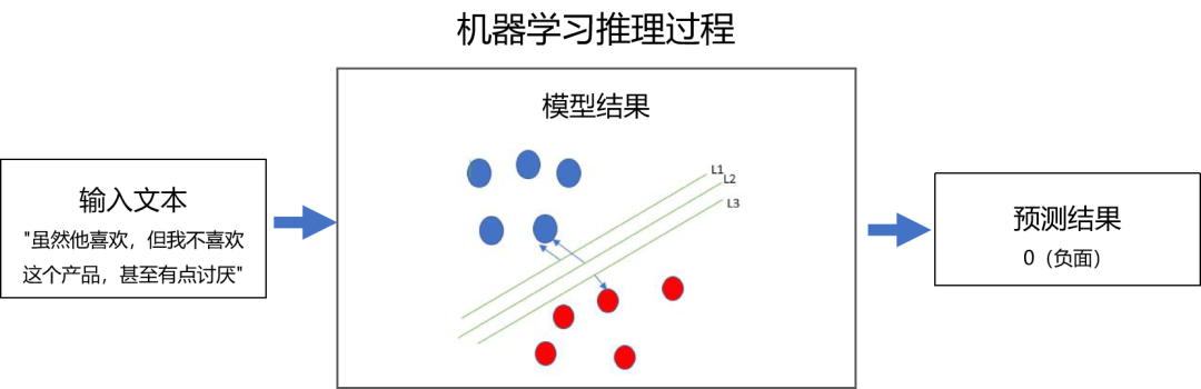 (6)推理:下图显示了机器学习推理过程,输入一段符合场景的文本,该模型就可以对文本的情感进行预测。