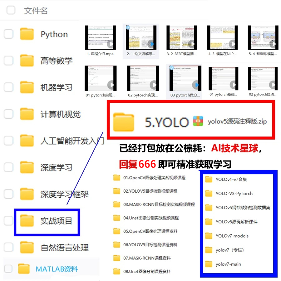免费分享一些我整理的人工智能学习资料给大家,包括一些AI常用框架实战视频、图像识别、OpenCV、NLQ、机器学习、pytorch、计算机视觉、深度学习与神经网络等视频、课件源码、国内外知名精华资源、AI热门论文、行业报告等。