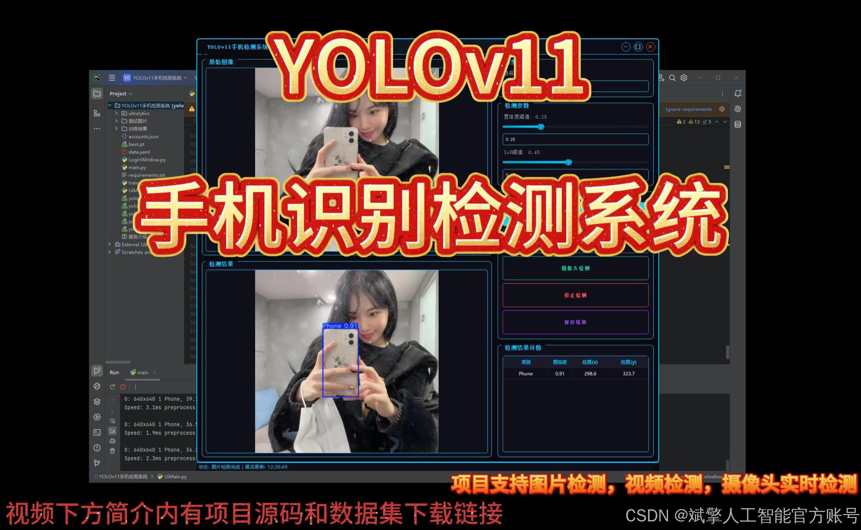 基于深度学习YOLOv11的手机识别检测系统(YOLOv11+YOLO数据集+UI界面+登录注册界面+Python项目源码+模型) —————————————_哔哩哔哩_bilibili